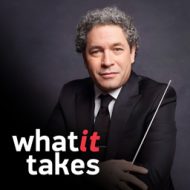 Gustavo Dudamel: Giulini, which was a very, I consider him a very spiritual conductor. You know? It’s true that he didn’t have a gesture, let’s say a beautiful gesture to show to the orchestra, but it’s something more than that. And I remember Lorin Maazel, which was a very important figure, because for me, he have an amazing technique in conducting, you know, this clean, beautiful, clear, powerful, all of that. And he told me, you know, there are conductors and there are natural conductors, and this is something that I will say, it is something very natural in your spirit if you know how to open that door, you know, and you have the chance, the opportunity to evolve in that space of understanding the real dimension. The real dimension is very big. It’s not only one dimension. All of this dimension that you have the opportunity to discover, this is, I think this is the secret of conducting, you know, more than knowing historically what you are conducting, more than knowing your technical things that you can tell to the orchestra. There is something that goes beyond that and it’s that, that unique connection that we can describe, you know, as spiritual, as metaphysical, as psychological, but it’s something that, that is the most wonderful thing that I think conducting, you know, the conducting life, half, you know, is this kind of understanding that that dimension that goes even beyond the notes that you are conducting. And, you know, I’m in this path, you know. I’m not anymore a young promise or a young conductor, I’m middle age already, but I consider that, you know, there’s a lot still to discover. And it’s amazing when you open that door and you have the chance to develop that understanding of what is conducting about.