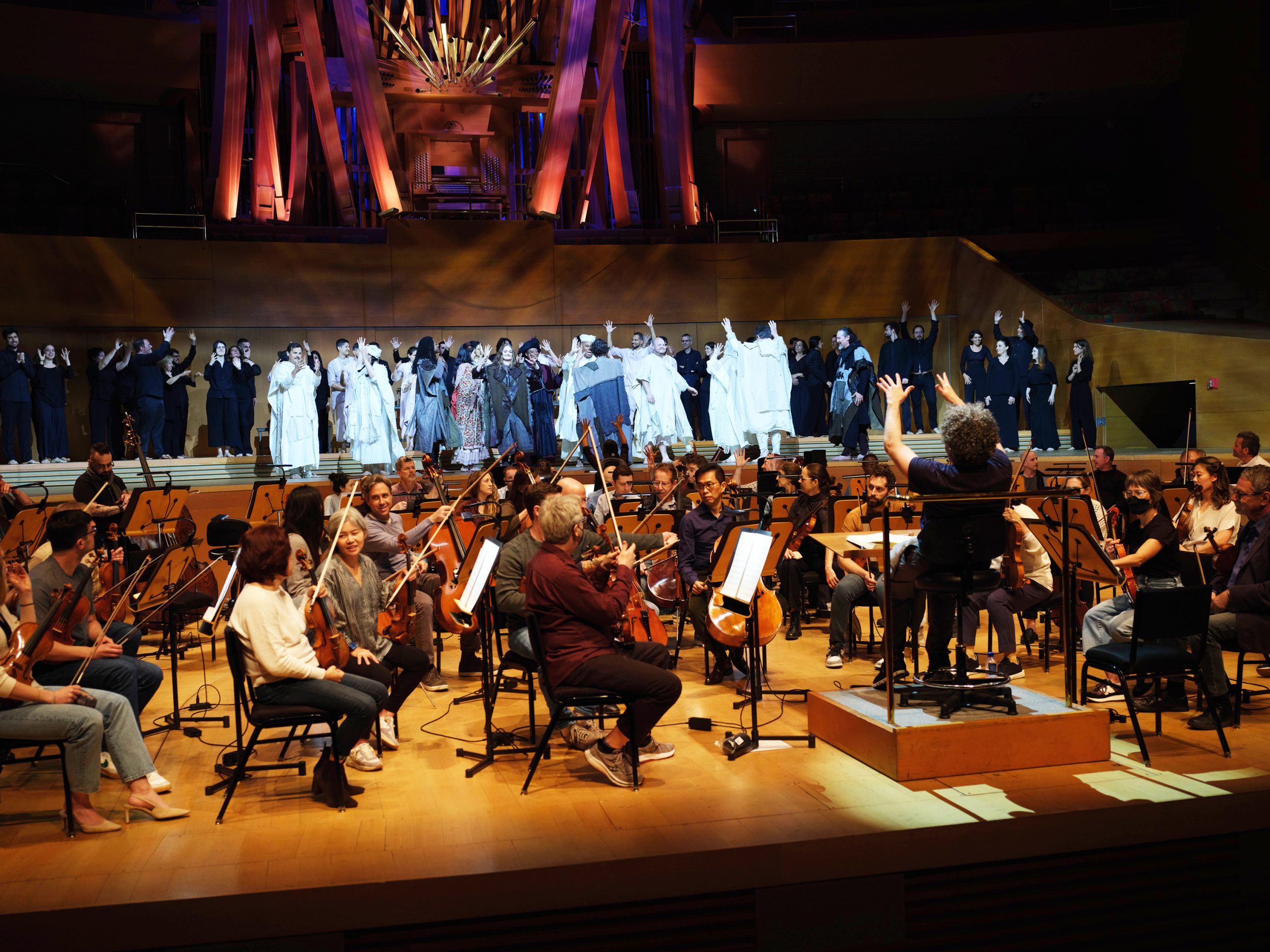 Gustavo Dudamel: You have to understand as a conductor that you are nothing without the musicians that you have in front. So, everything starts from admiration and respect. When you really put that first and then you put your knowledge about what you know and what you want to achieve, then it’s the right order of things. And it’s an opportunity. When you are in front of an orchestra is a gift. You know, it’s a gift to have the chance to guide these wonderful musicians that have played with the best conductors. They have developed their careers in the highest level. And you have the opportunity to be in front of them and inspire them. Because at the end the technical things, let’s say, are not difficult, when you have a professional orchestra in front, are not difficult to work with because the orchestras will do in one minute. But how to guide them in a journey of inspiration with music, not only would be charming or beautiful or moving, no, it’s something about that kind of mystery, this mysterious moment that we have every rehearsal and that it gets the real dimension during the performance. This is something that you, you have to know or you have to let this happen in the most natural way. When you force that, then it gets out of context. And I remember that first concert with, with the Philharmonic, with Los Angeles Philharmonic, it was very beautiful because I was at the Hollywood Bowl, and it was really beautiful like this, you know, beautiful with [unclear] and Tchaikovsky. But then my first subscription was that one also in America with the Philharmonic doing L’Atlantida, Bartók, and Rachmaninoff with Fima. And that was beautiful because we were in the right acoustics to work, to do it. And yes, it was a magical moment. I think that moment was kind of the moment that started the possibility for me to be music director there.